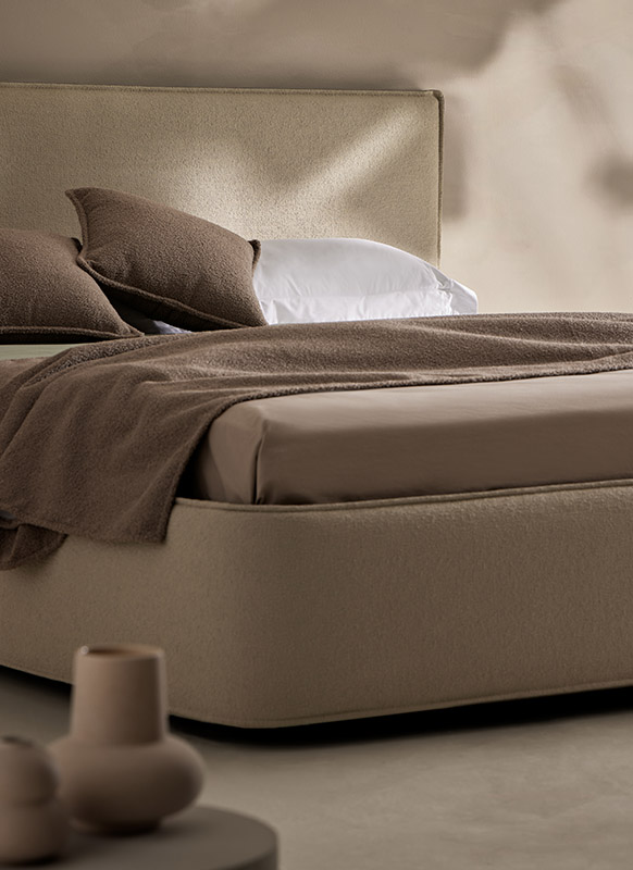 Senttix presenta como novedad una familia de bases en las que el colchón se integra en la estructura de la cama, bajando así su altura visible y otorgando toda la importancia a la cama como elemento principal.