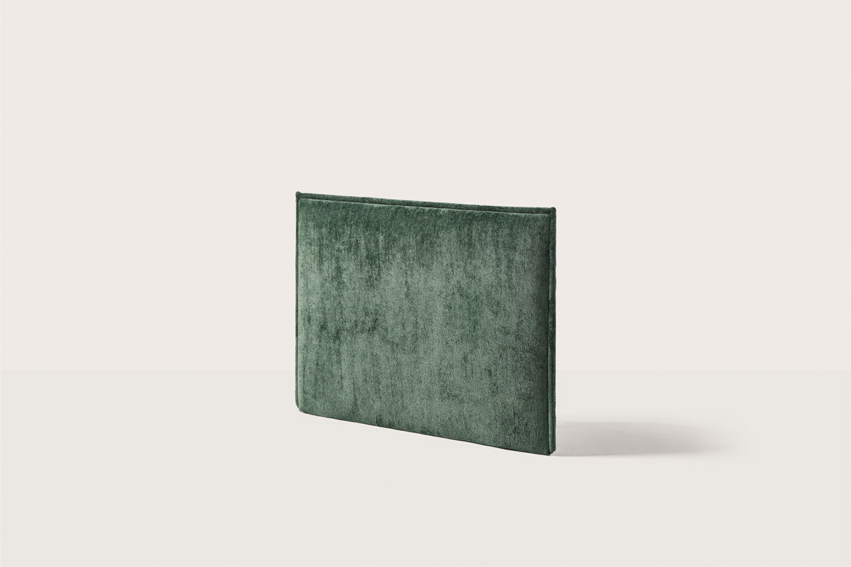 La geometría como principio fundamental del diseño. Líneas rectas, combinadas con un volumen sutil y una estudiada selección de tejidos de tendencia, conforman cabeceros perfectos para camas donde prima la sencillez. El cabecero Palm termina con una elegante pestaña en su contorno que afila delicadamente su volumen.