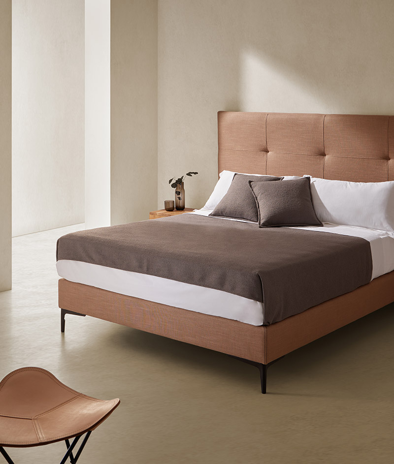 La base Palm es la más transpirable y natural de la colección Senttix. Fabricada en estructura de madera macíza, sustenta el colchón mediante lamas flexibles de haya. Disponibles en varias alturas, pueden conjugarse a su vez con patas de diversas alturas y diseños. Pequeños detalles de cosido culminarán la naturaleza de las bases que mantendrán su vigencia con el paso del tiempo.