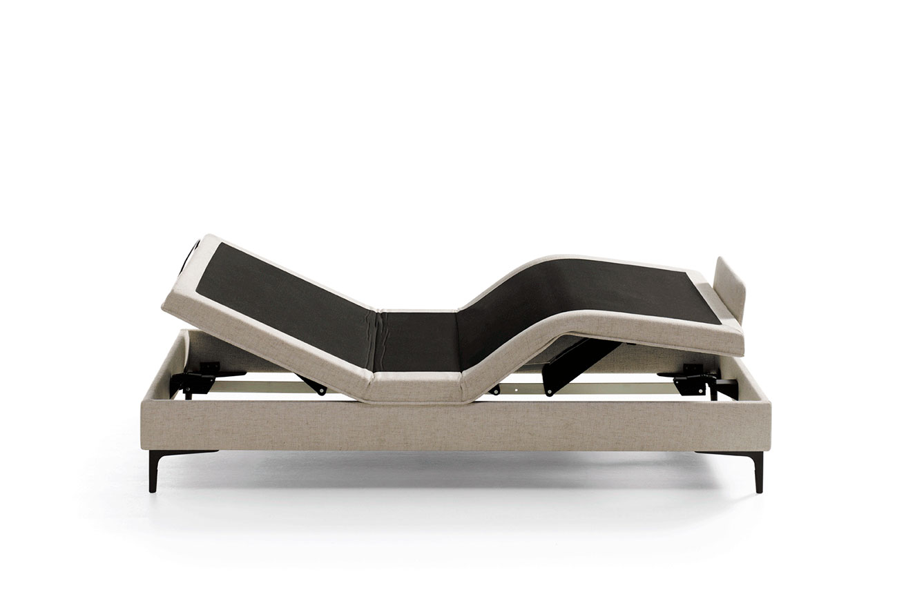 Cuatro planos de articulación con más de 1500 micromuelles ensacados envueltos en un tejido antideslizante y una estructura de madera, hacen de Sapphire una cama articulada ligera, cálida y elegante.